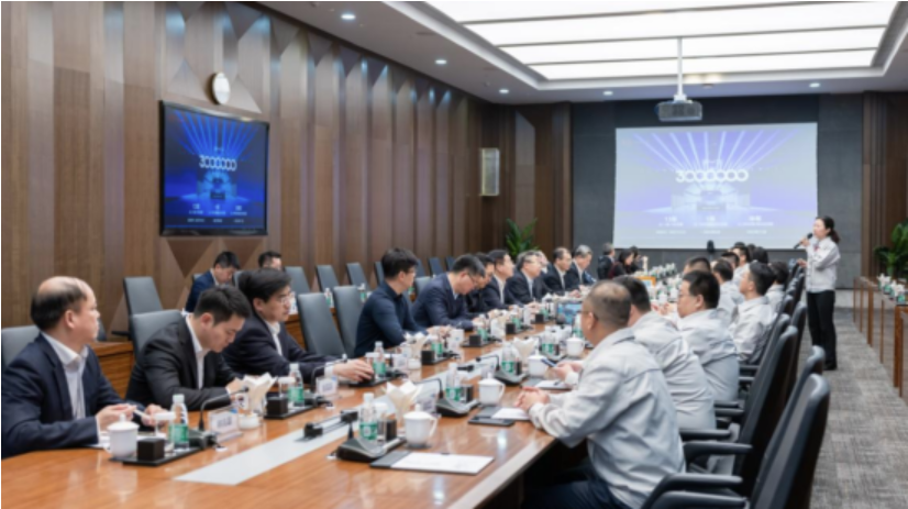 王传福董事长欢迎刘敬桢董事长一行来访,介绍了比亚迪集团发展情况。表示,比亚迪集团业务横跨汽车、轨道交通、新能源和电子四大产业,致力于构建“电动车治污,云巴治堵”的绿色大交通体系,助力实现双碳目标。期待与国药集团在节能减排、科技研发、智能制造等方面拓展合作渠道,以科技力量为医疗健康产业增长赋能。